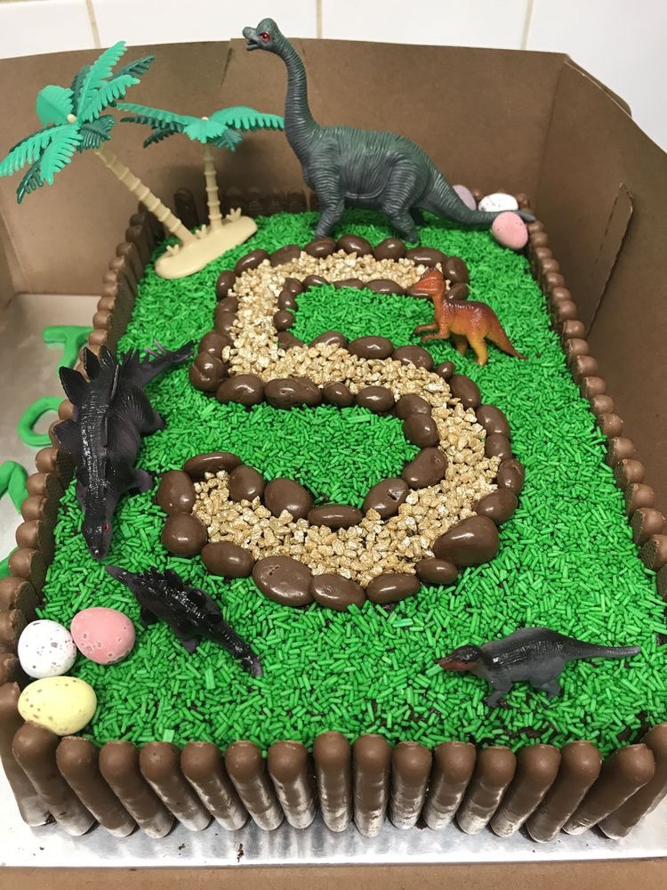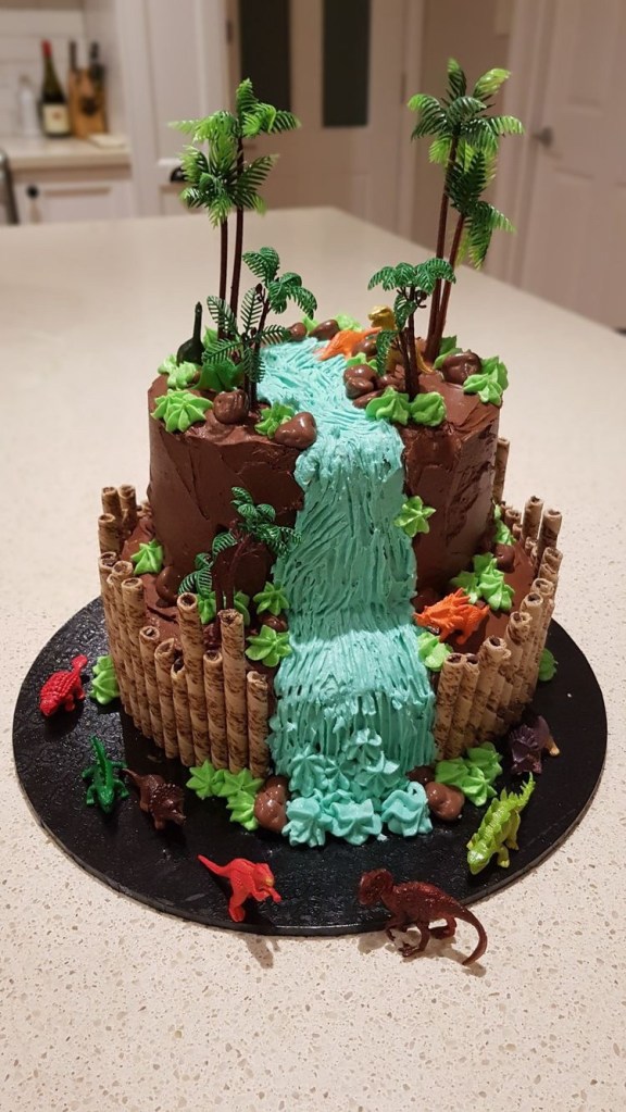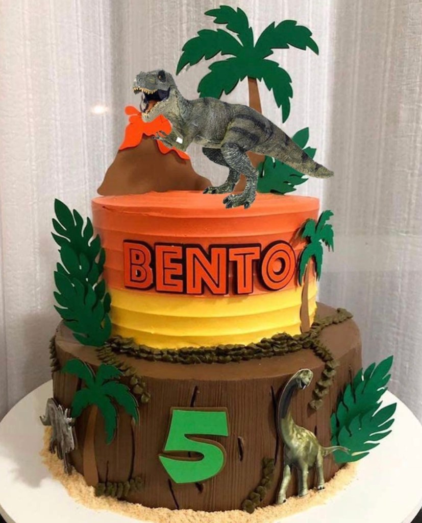 And what’s a prehistoric scene without a dramatic volcano? Some toy sets include a volcano, which would make a spectacular addition to your cake. You could even make the volcano ‘erupt’ using red and orange frosting!